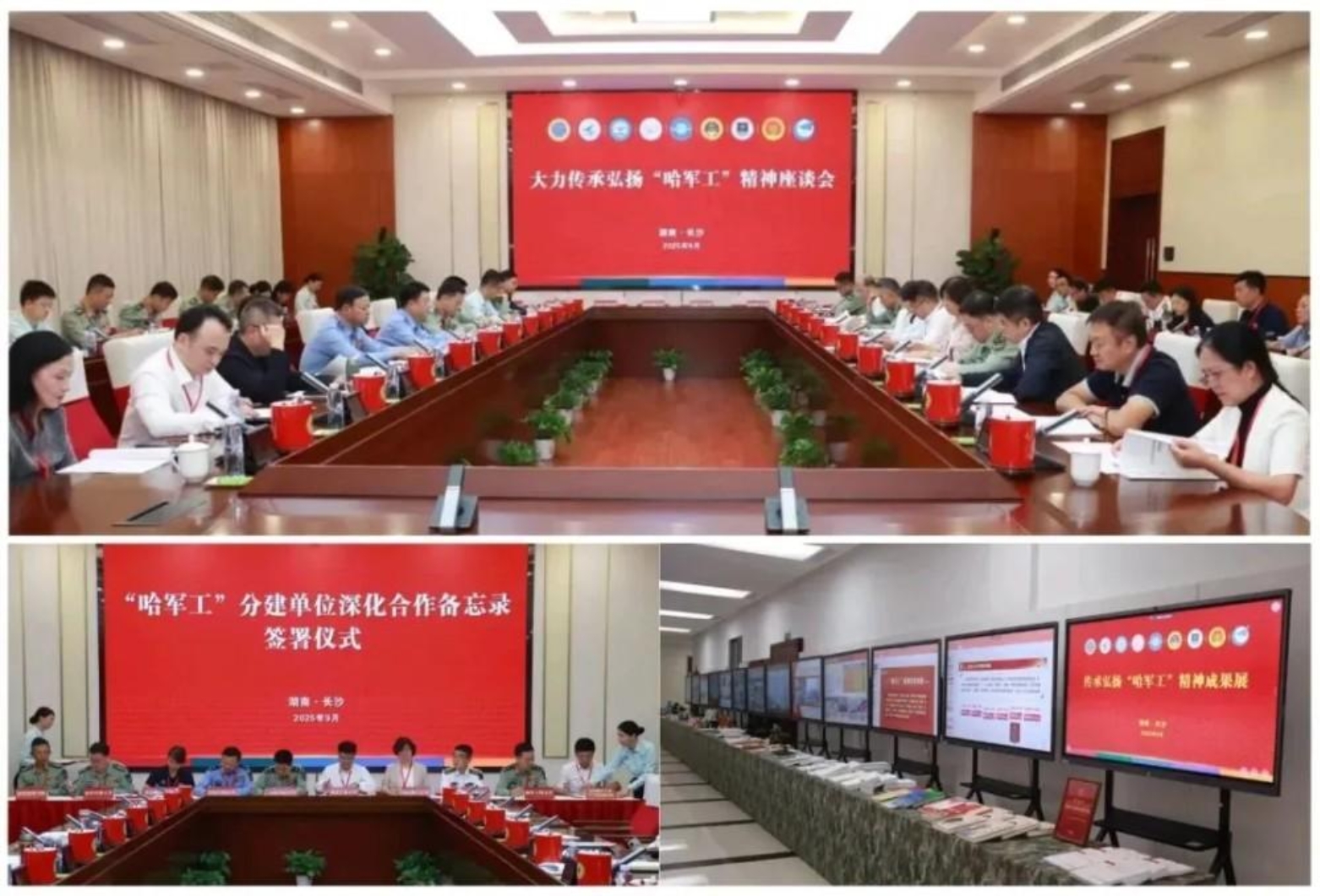 下午的“哈军工”精神专题座谈会,西北工业大学、空军工程大学、南京理工大学、哈尔滨工程大学、海军工程大学、陆军兵种大学、陆军工程大学、陆军防化学院、中国航空工业空气动力研究院代表,以及“哈军工”校友会代表应邀参加。