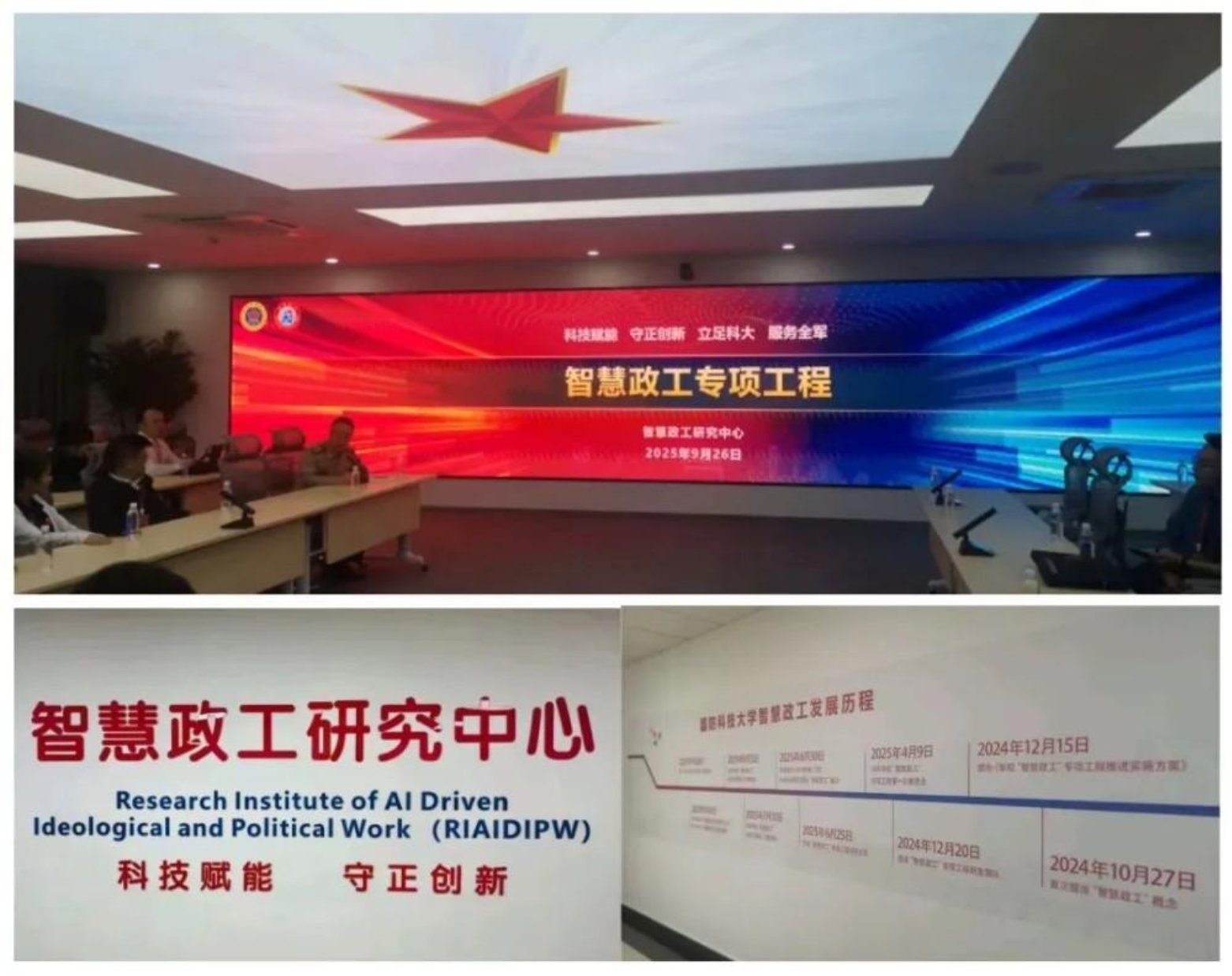 早上8点,主论坛在学术成果馆准时开始。会场里庄严肃穆,参会的人整整齐齐。讲台上,军地专家们讲得内容可丰富了,我印象最深的是从“三湾改编”引申出来的智慧政工。
