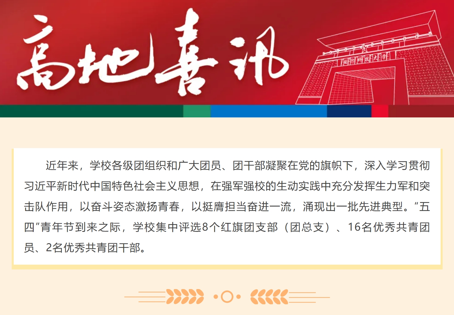近年来,学校各级团组织和广大团员、团干部凝聚在党的旗帜下,深入学习贯彻习近平新时代中国特色社会主义思想,在强军强校的生动实践中充分发挥生力军和突击队作用,以奋斗姿态激扬青春,以挺膺担当奋进一流,涌现出一批先进典型。“五四”青年节到来之际,学校集中评选8个红旗团支部(团总支)、16名优秀共青团员、2名优秀共青团干部。