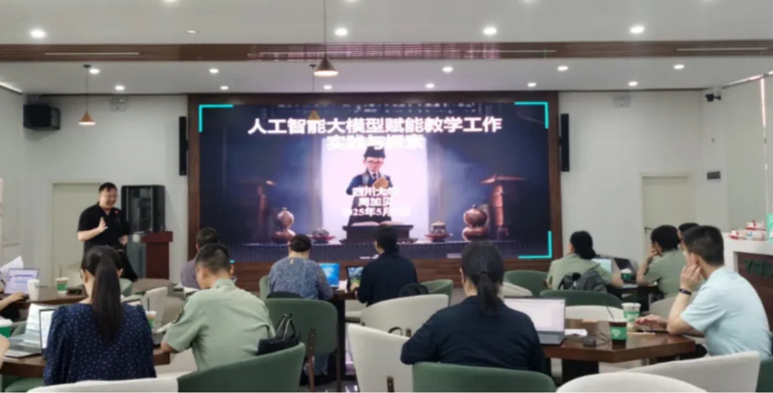 5月9日,智能科学学院高地·“智胜坊”学术活动在长沙校区一号院高地星光咖啡馆举行。四川大学周加贝副教授围绕“人工智能大模型赋能教学工作的实践与探索”的主题,分享了AI赋能教育教学的典型应用案例,现场演示并带领参会人员体验了AI工具的组合应用方法,还就人工智能如何有效落地课堂教学开展了热烈交流。活动由学校教师发展中心主办、智能科学学院承办,60余名学校教师在线上线下参加。