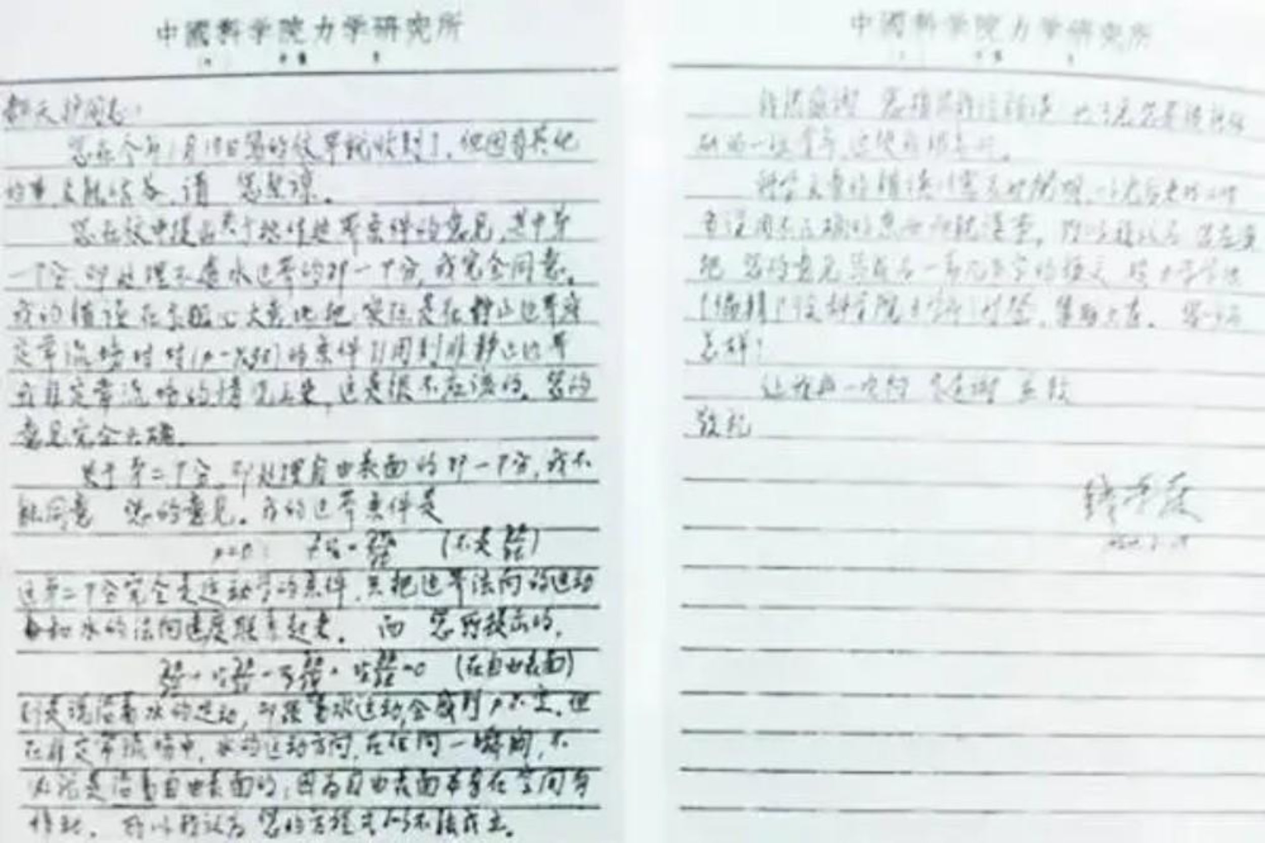没想到两个月后,郝天护就收到了钱学森的回信。满满两页纸,钱学森在信中对年轻人的称呼用了五个“您”,并表示感谢和鼓励:“我很感谢您指出我的错误!也可见您是很能钻研的一位青年,这使我很高兴。科学文章的错误必须及时阐明,以免后来的工作者误用不正确的东西而耽误事。”
