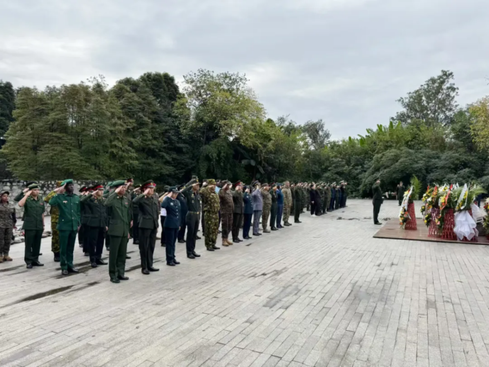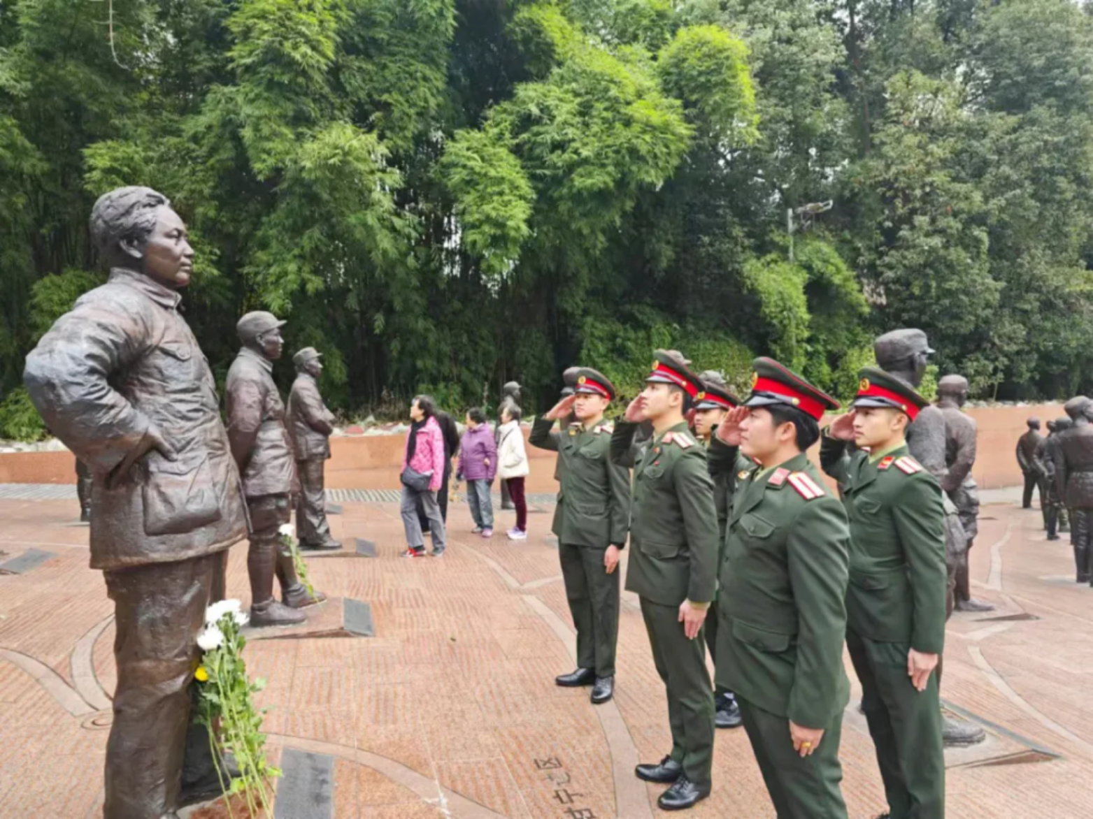 外军学员郑重向毛主席雕像献花敬礼