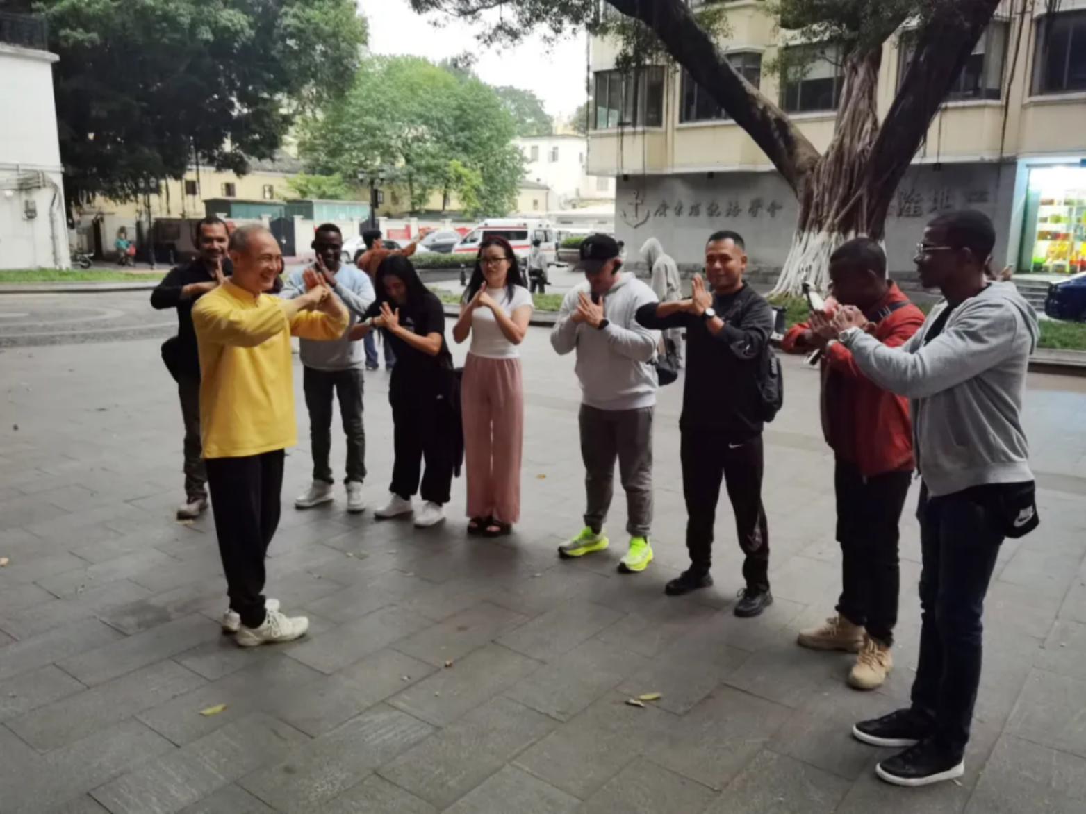 漫步在沙湾古镇、永庆坊、民俗村,学员们与中国少数民族演员共舞,与当地居民畅谈交流,沉浸式体验中华民族文化和岭南市民生活,在美丽的大梅沙海滩上动情写下“我爱中国”四个大字。