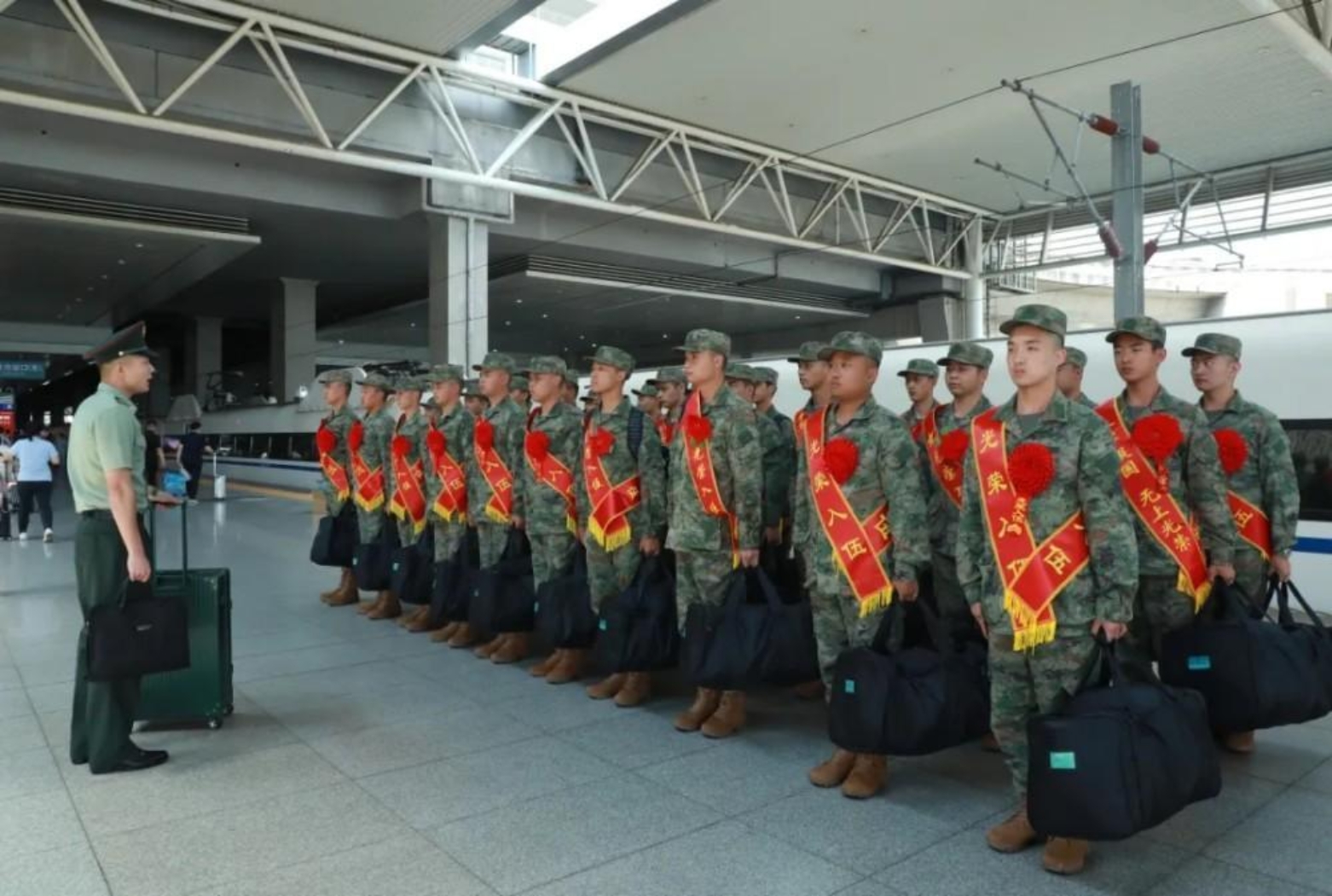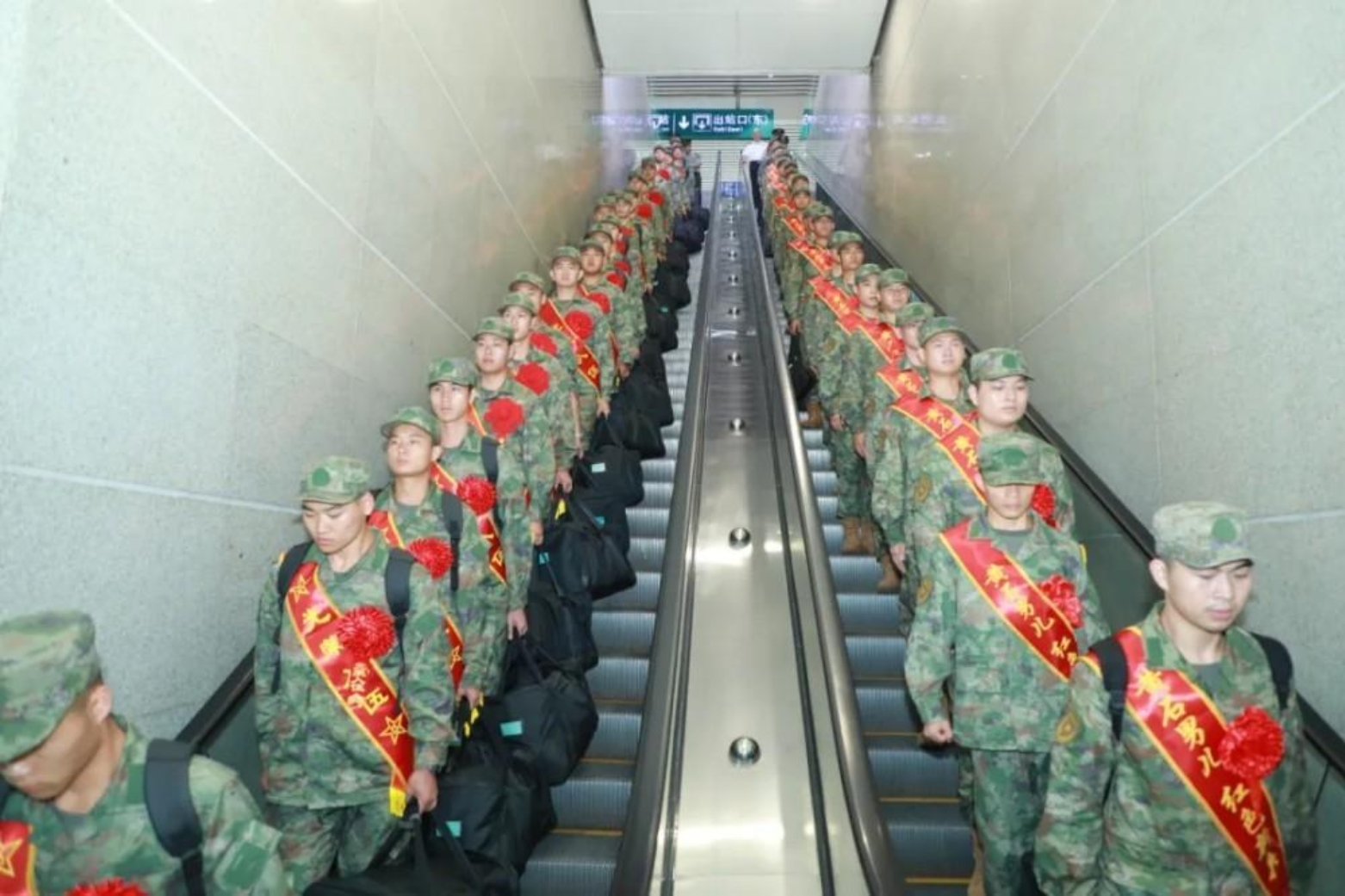 新训干部骨干身着军装,早早在站台肃立等候。整齐的队列如青松般挺拔,展现出军人的昂扬姿态。在他们的感染下,新战友们动作严谨有序,尽显纪律意识。营门前,锣鼓震天,敲响了新时代的强军节拍;纵贯楼宇的竖幅熠熠生辉,映照出新兵们坚毅的脸庞。这不仅是热烈的欢迎,更是优良作风的传承。