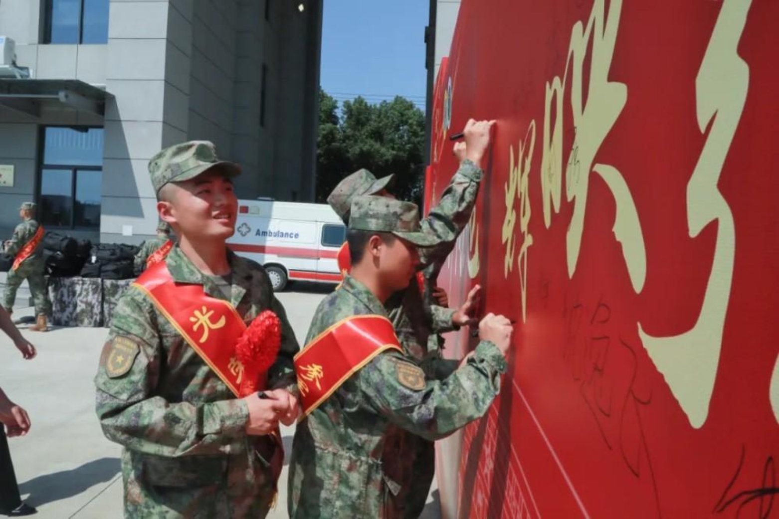 迎新仪式现场,最吸引眼球的还是那一抹抹大红色。“砺剑高地,辉映强军新征程”的签名墙前,新战友们郑重落下笔墨。每一笔都饱含着从军报国的赤诚,每一个名字都镌刻着建功科大的壮志。这不是简单的签名,而是对家国的深情告白,更是对建功科大的庄严承诺:选择军营,便意味着选择奉献;穿上军装,就扛起了责任担当。从踏入军营的那一刻起,他们便将个人理想融入“高地”,以初心为灯,用誓言铸魂。
