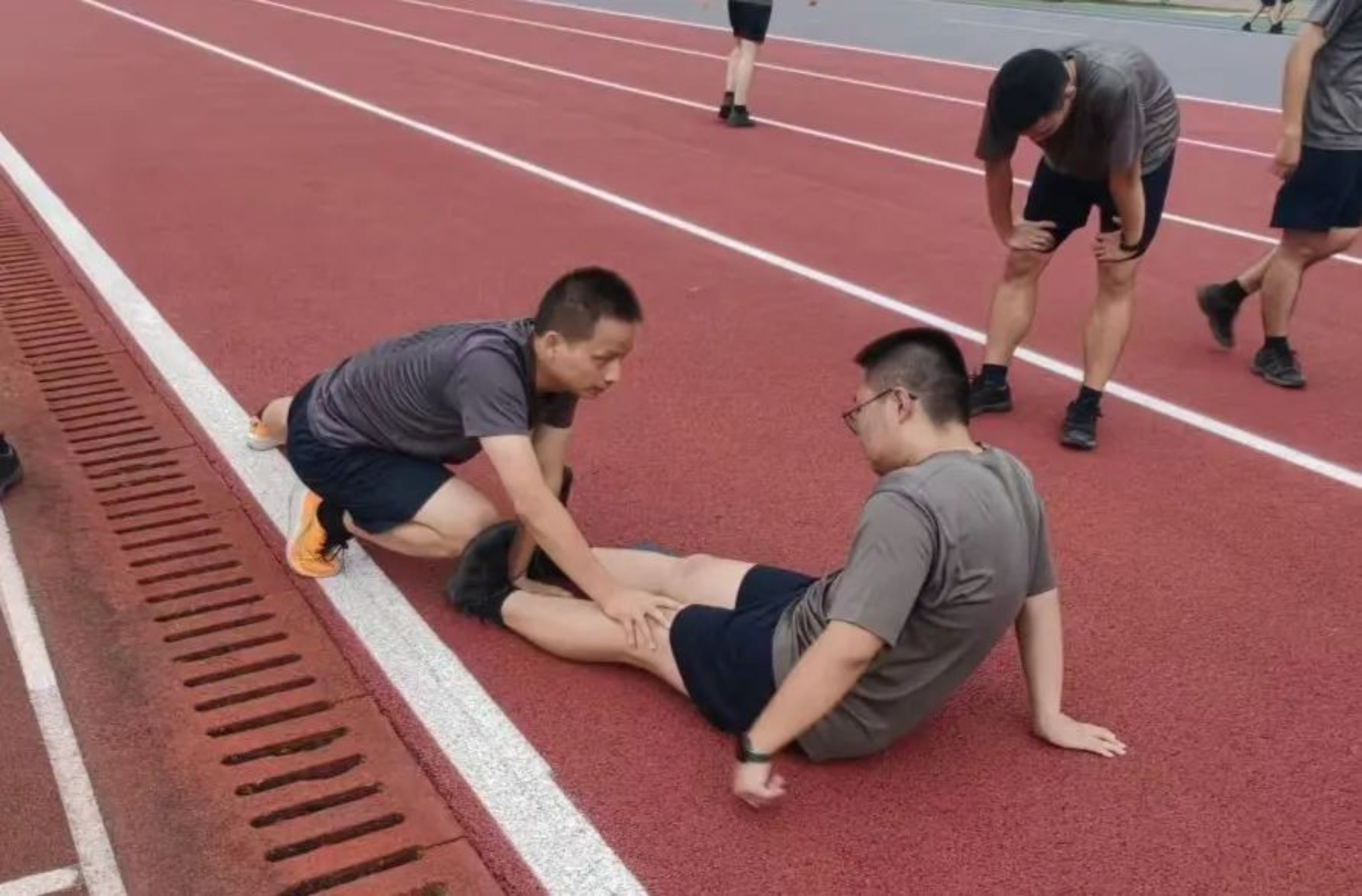 在那次紧张的速度耐力训练结束后,队员们一个个气喘吁吁,汗水湿透了衣襟。忽然,队长敏锐的目光捕捉到一名队员因抽筋倒在跑道上,表情痛苦地翻滚。他毫不犹豫地冲上前,用自己丰富的训练经验,迅速采取按摩措施,缓解队员的痉挛。队长的手法娴熟而有力,不久便成功减轻了那位队员的疼痛。这一幕深深打动了在场的学员们,他们心中涌起对这位既负责又尽职的队长的钦佩与感激。