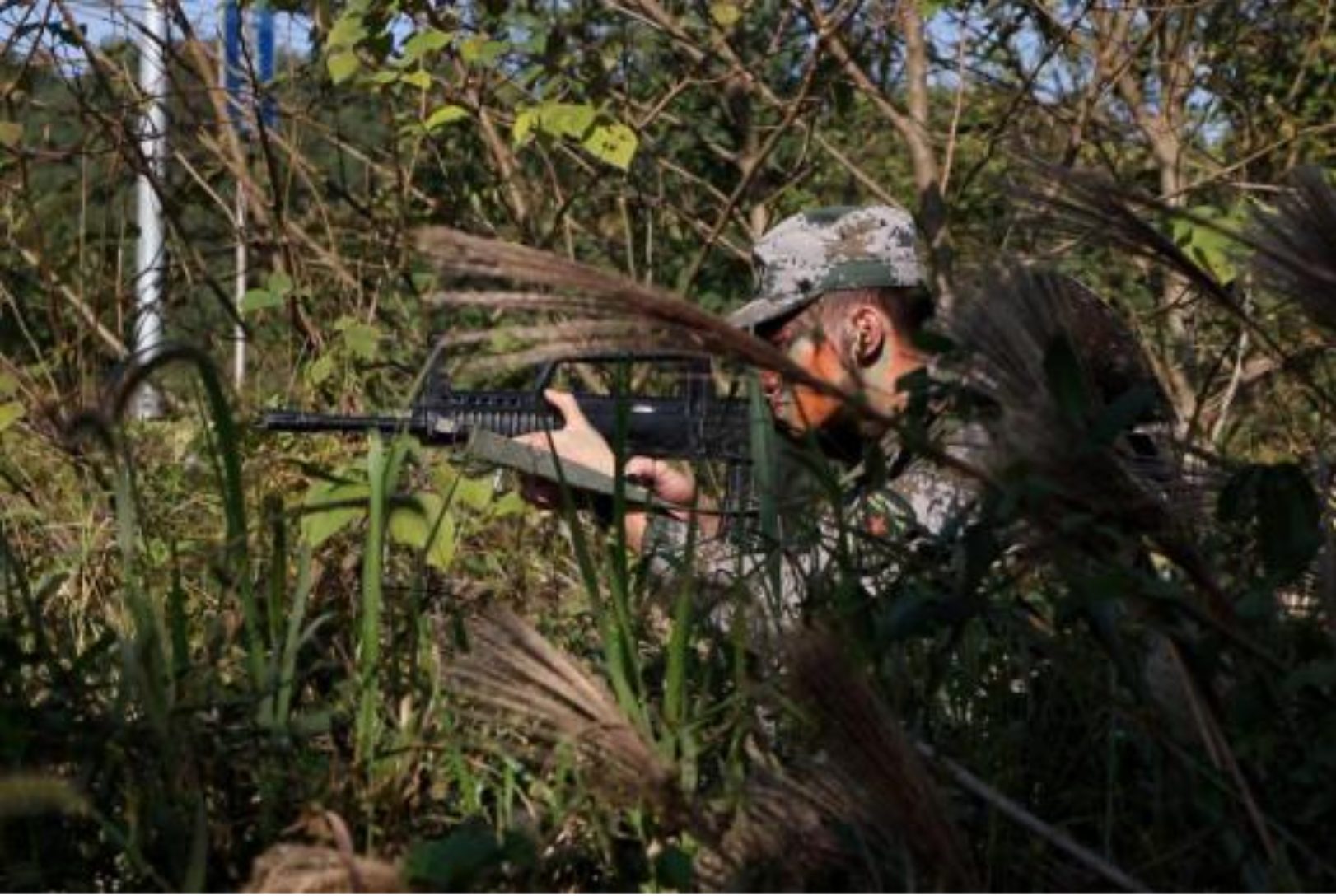 本次挑战赛围绕“吃、住、行、藏、防”五个方面,设置取火净水、露营、通过特殊地形、掩体构筑与伪装、野外防护5个赛段10个实战化科目。