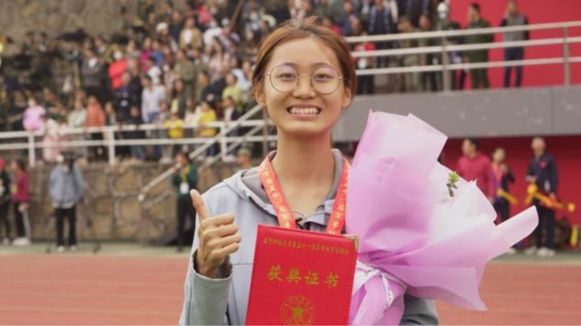 “呼哧……呼哧……”女子4x100米赛场上,作为最后一棒的罗欣怡全力冲过终点后,插着腰大喘粗气。“有点可惜,比第一慢了点。”罗欣怡笑着说道。虽有遗憾,但她本次运动会勇夺“三金一银”的佳绩已足够耀眼!外表文文弱弱的她,身体里却藏着一股不容小觑狠劲儿。在训练中,她假想对手就在身后紧追,以此逼迫自己咬牙坚持,不断超越极限。“只有永保紧迫感,才能不断进步!”正是这股精神,驱动着她在训练与科研中刷新自我,阔步前进。