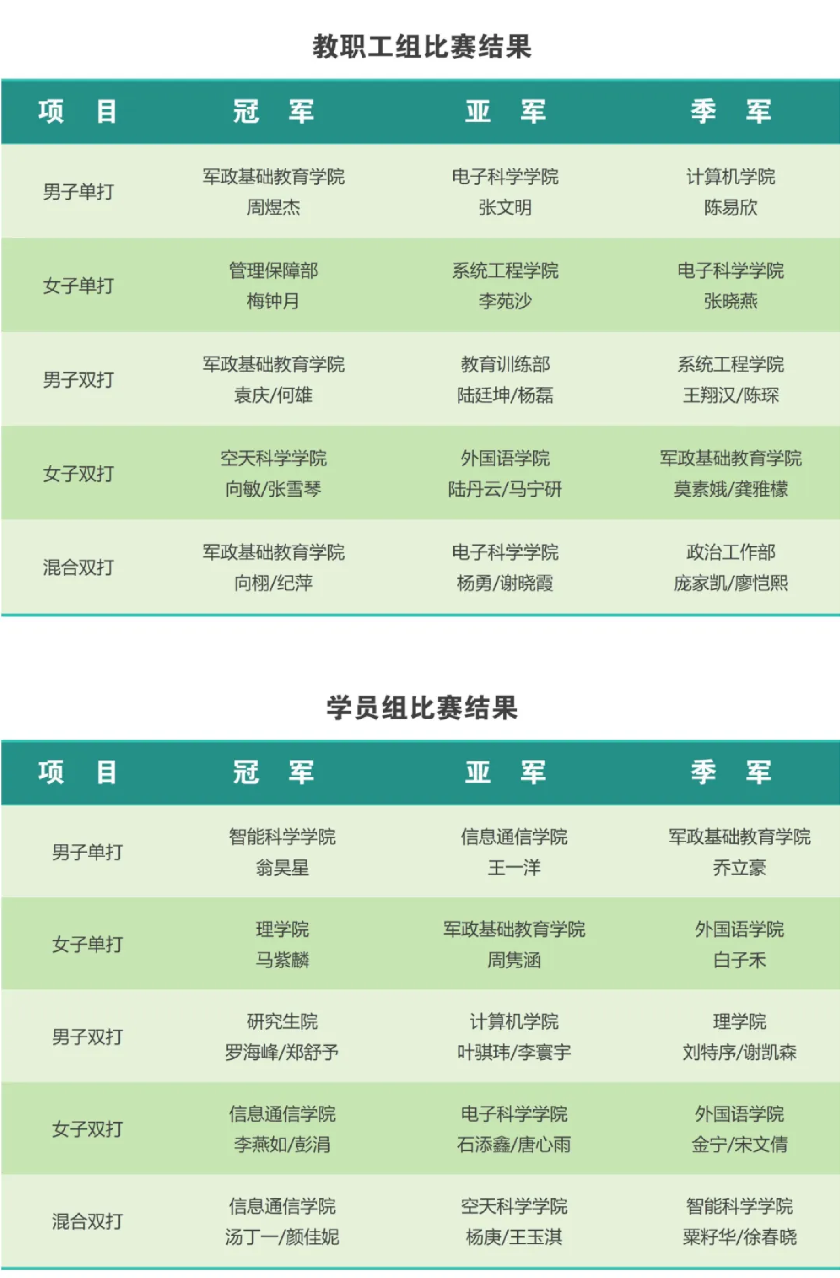 近日,国防科大第53届军事体育运动会“奋进杯”羽毛球赛单项赛在长沙校区一号院羽毛球馆成功举办。本次活动由学校政治工作部主办,智能科学学院协办,吸引了广大师生员工踊跃参加、同台竞技。