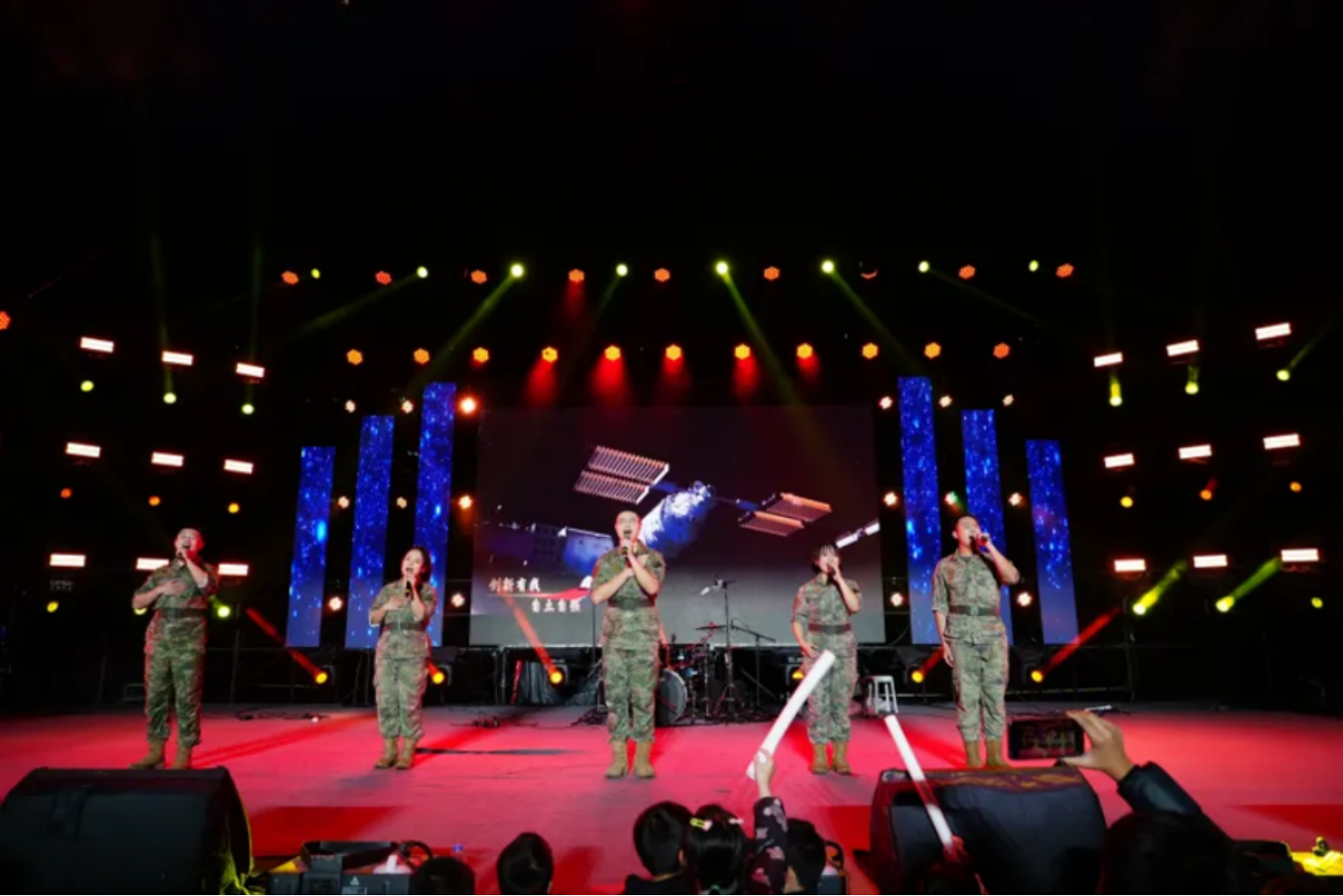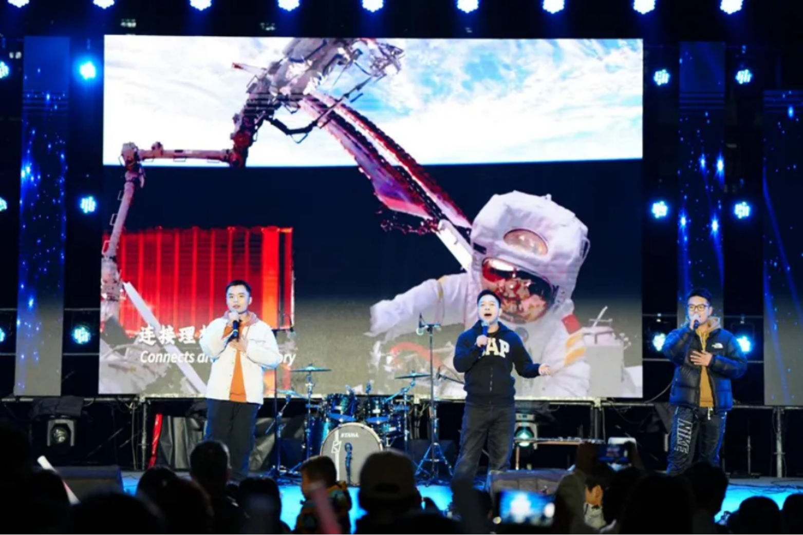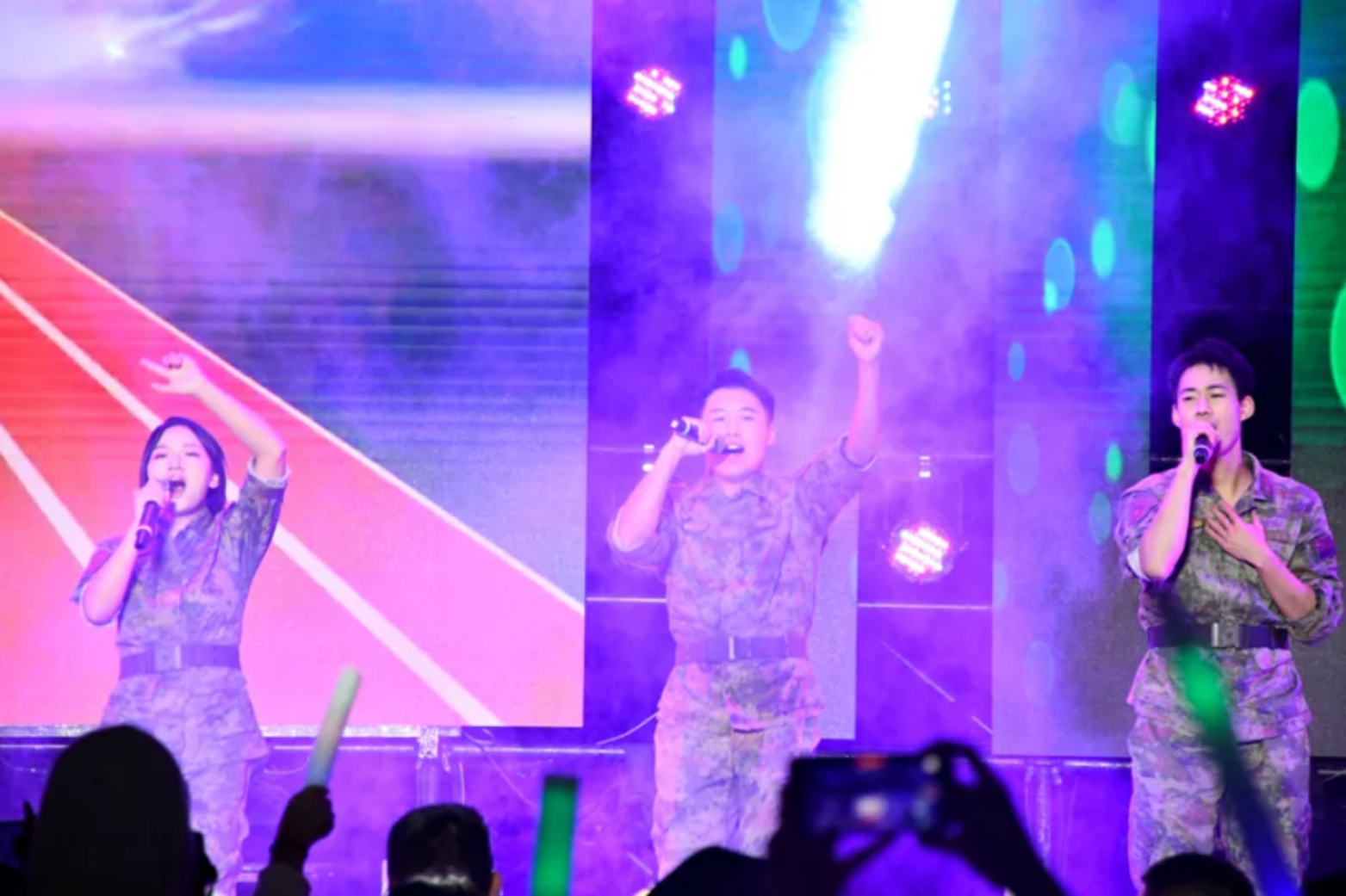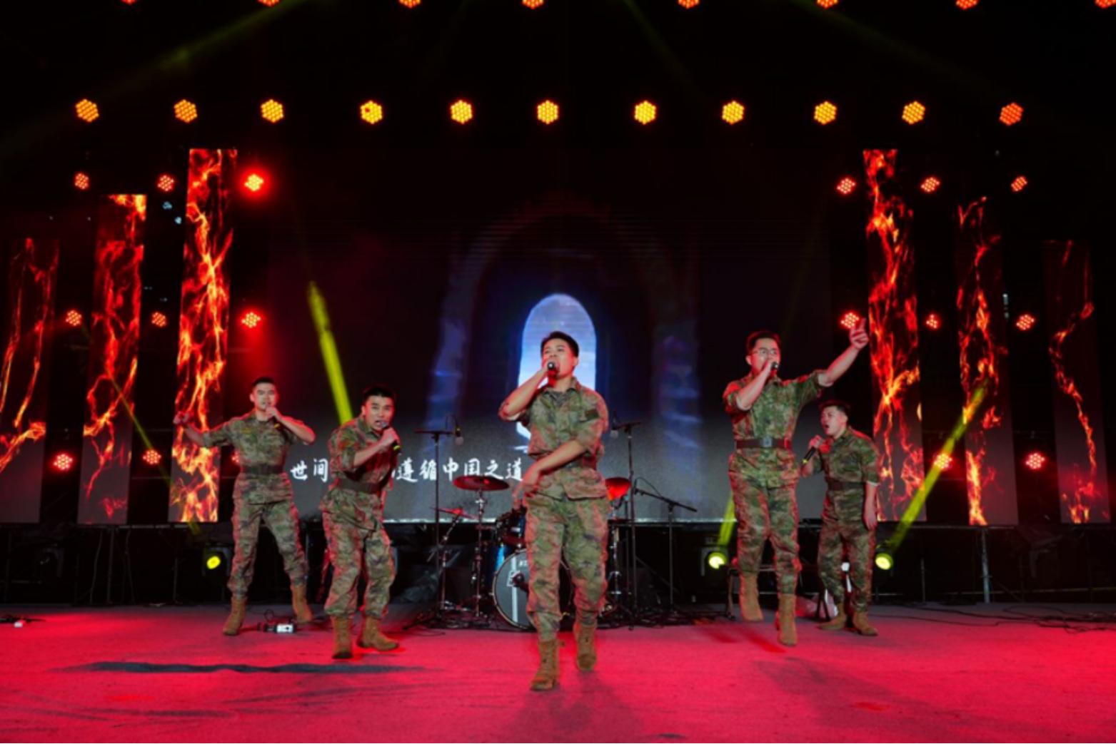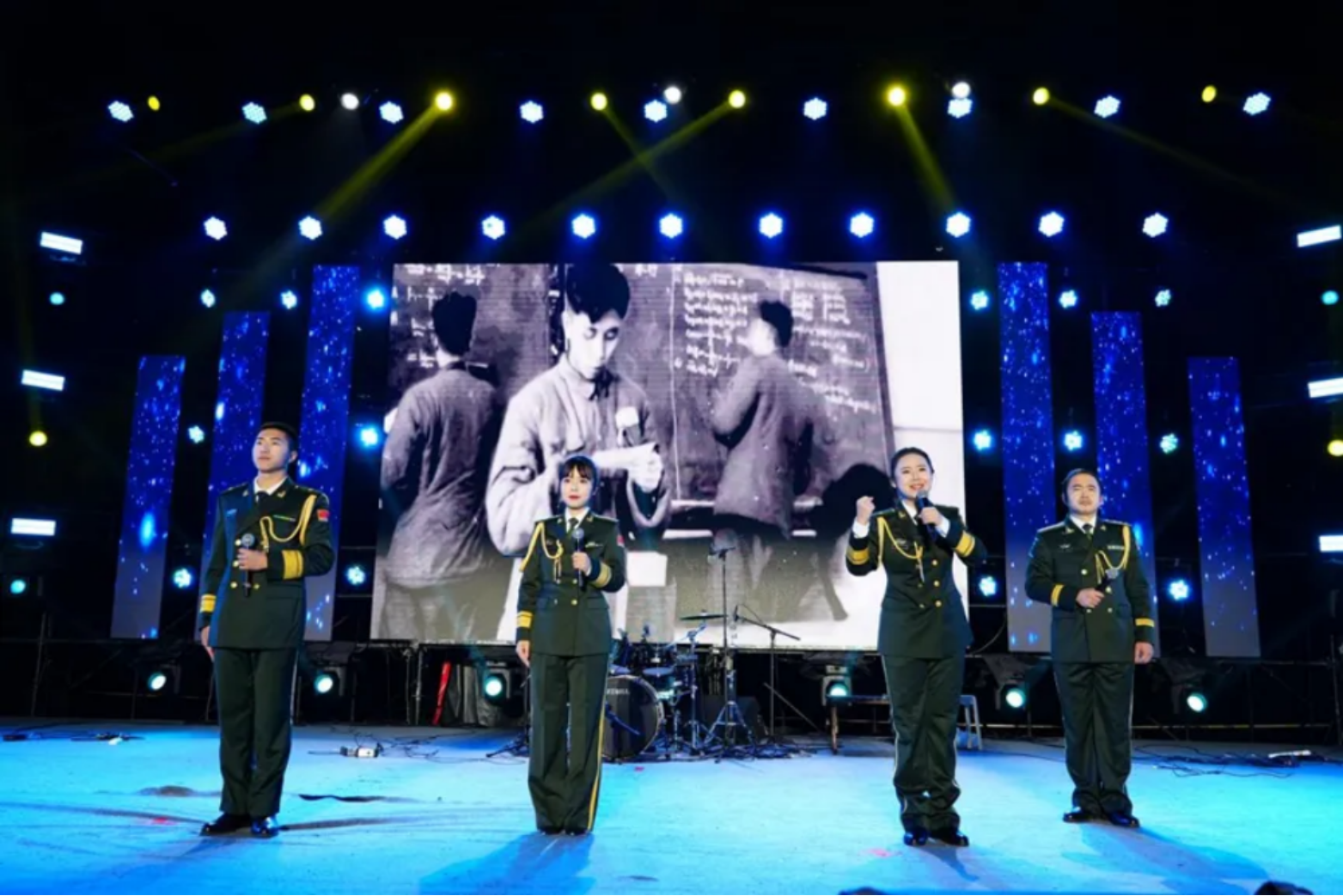 随后,《我把青春装进了行囊》与《青春戎华》这两首歌经过流行色乐队成员的精彩演绎,生动展现了40年来一代代硕博学子背起行囊奔向一线,为祖国书写荣光的故事。