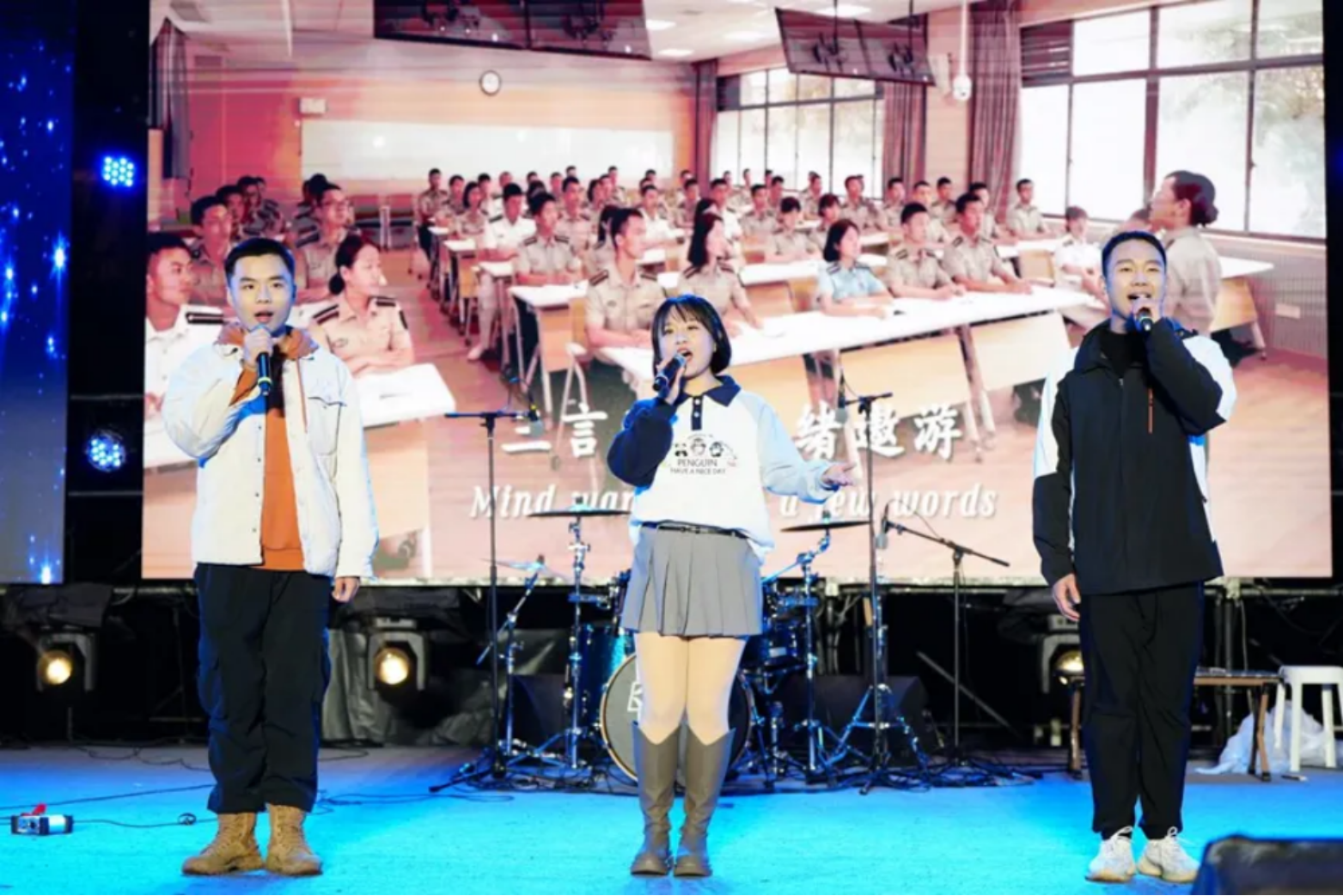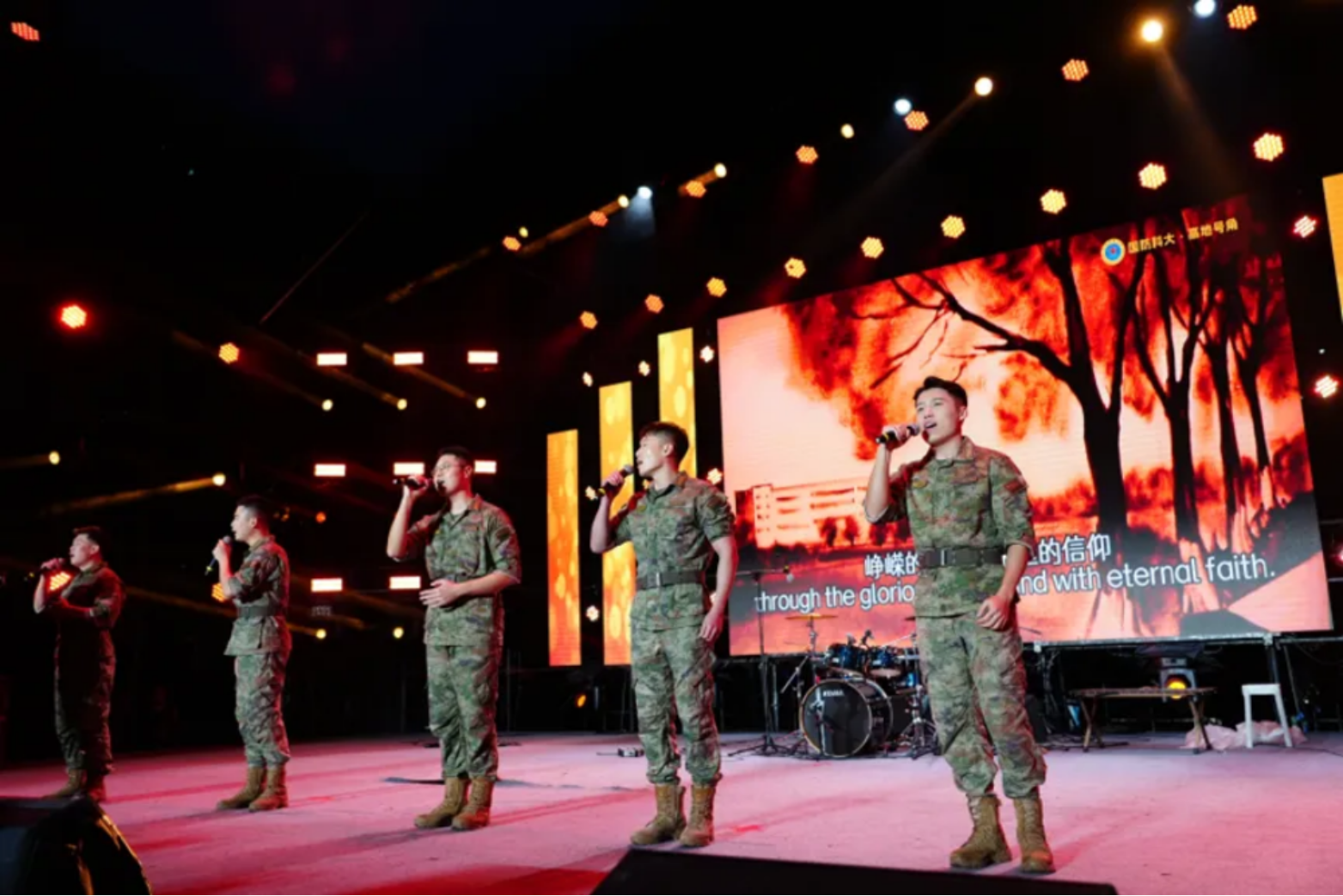 律动的青春让校园更添活力,跨线桥乐队先后带来了《六零一》《绽放》《长缨》三首歌曲。他们将国防科大的故事融进旋律,唱响了独属科大人的美好回忆。