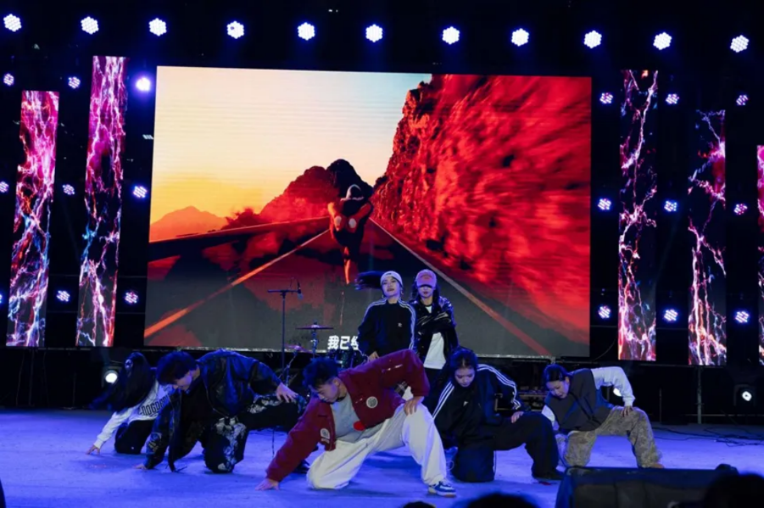 节奏一转,街舞俱乐部的小伙伴们用热情的舞蹈点燃了整片夜空,将气氛推向了高潮。