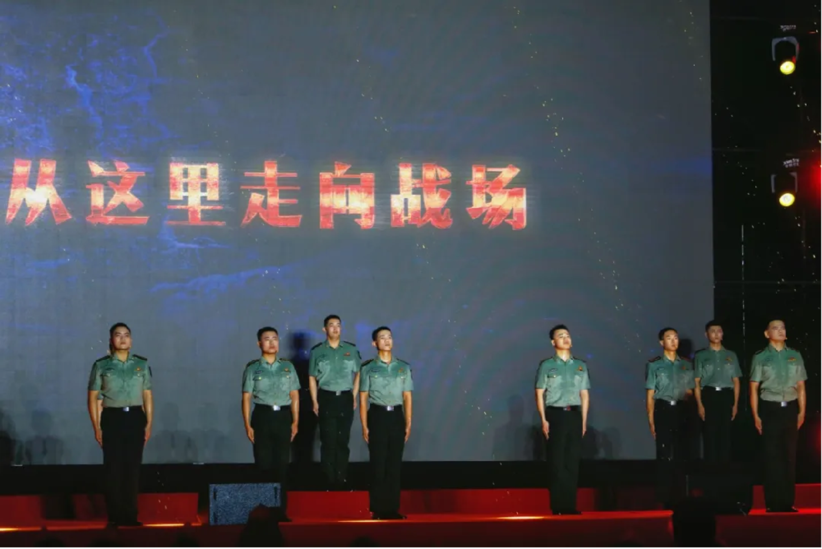 “勇往直前!奋进有我!”随着台上众学员的呐喊,会场的气氛走向高潮。全体学员面向观众,坚定的表情感染了所有人。