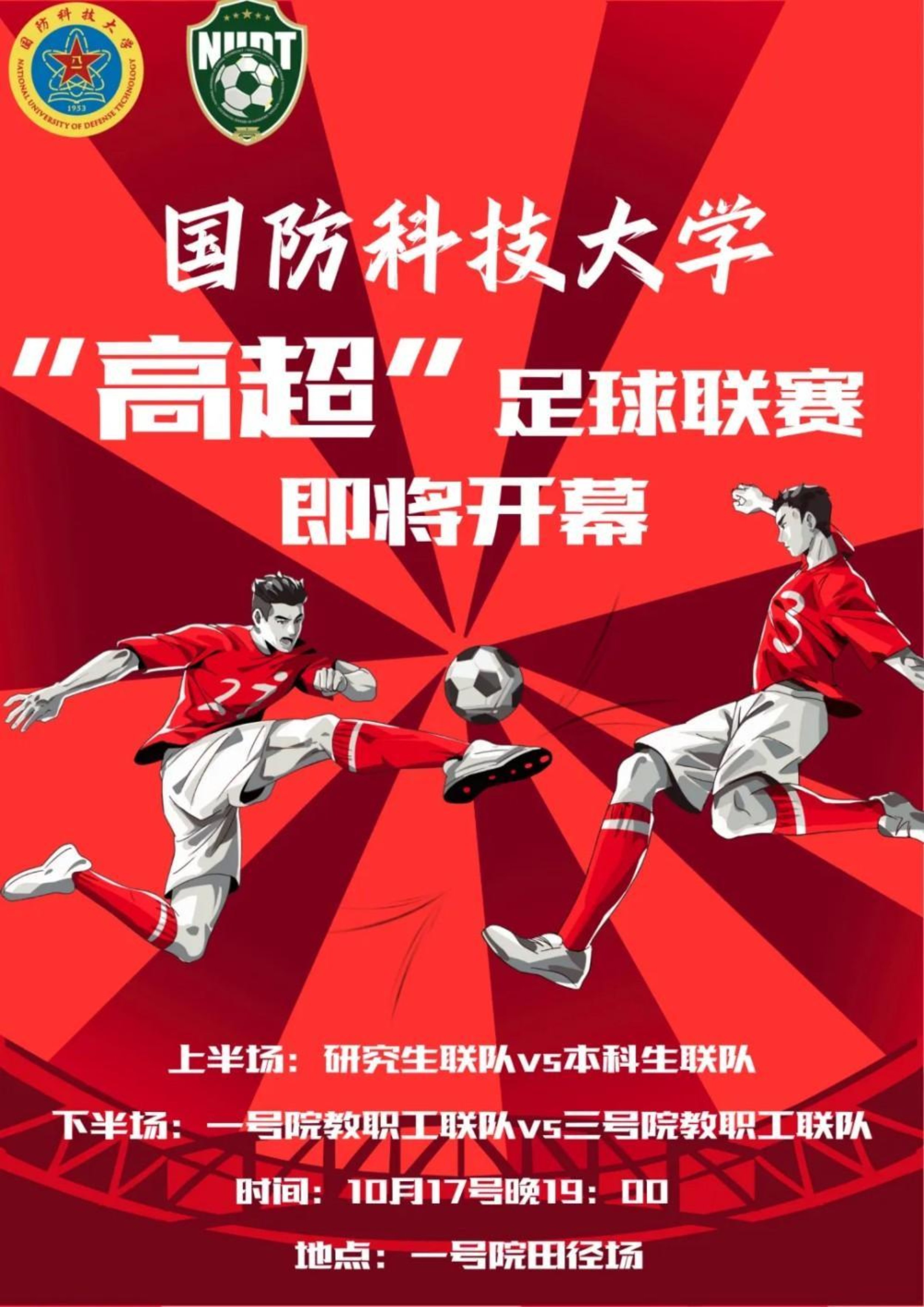10月17日(周五)19:00,Beat365唯一官方网站长沙校区一号院田径场将举办“高地奋进杯”足球联赛。