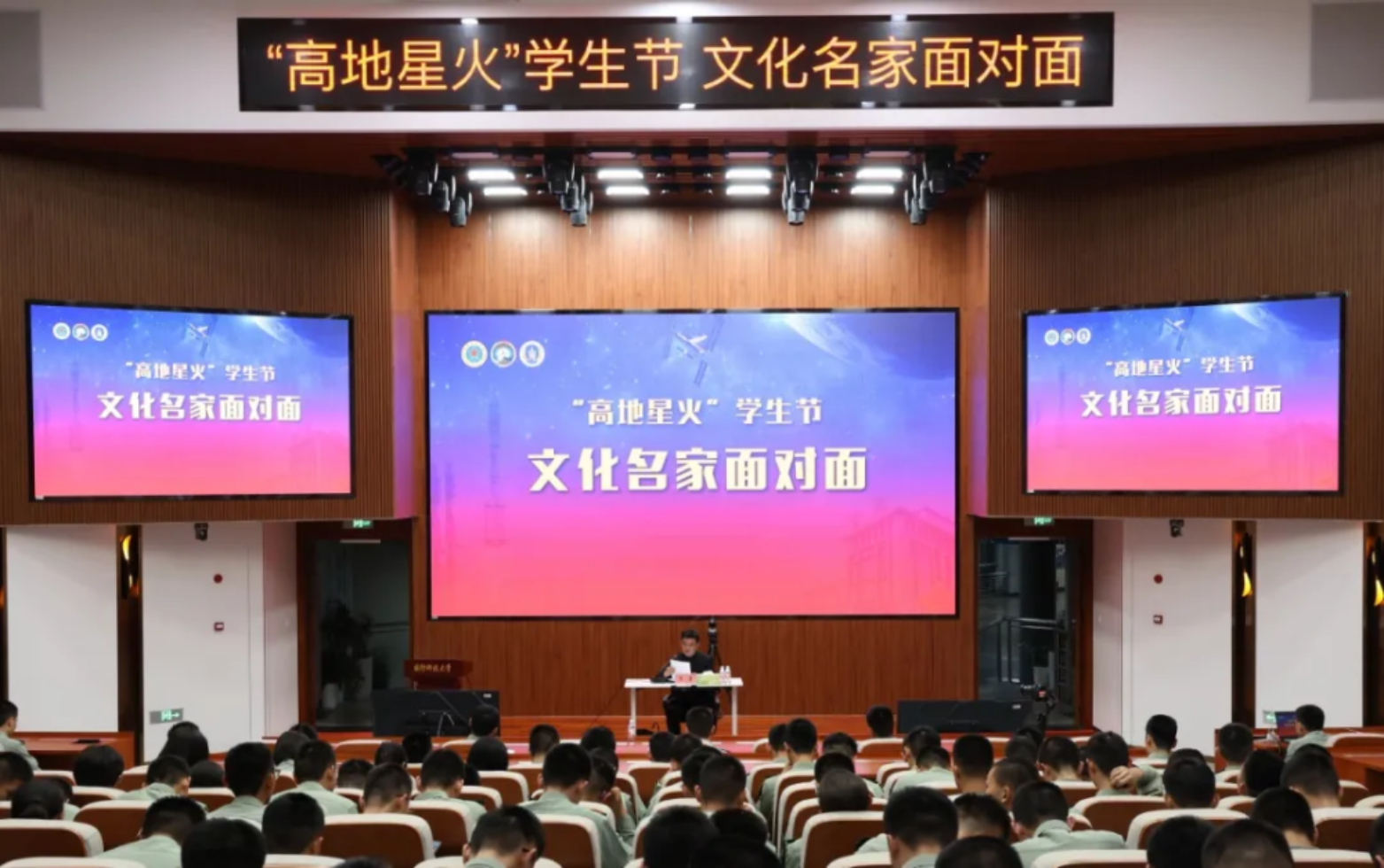 在一号院高地会堂,军旅词作家陈道斌、著名歌手纪敏佳就音乐创作问题和学校“高地”音乐创作室和“炽热”电声乐俱乐部的师生展开了探讨。