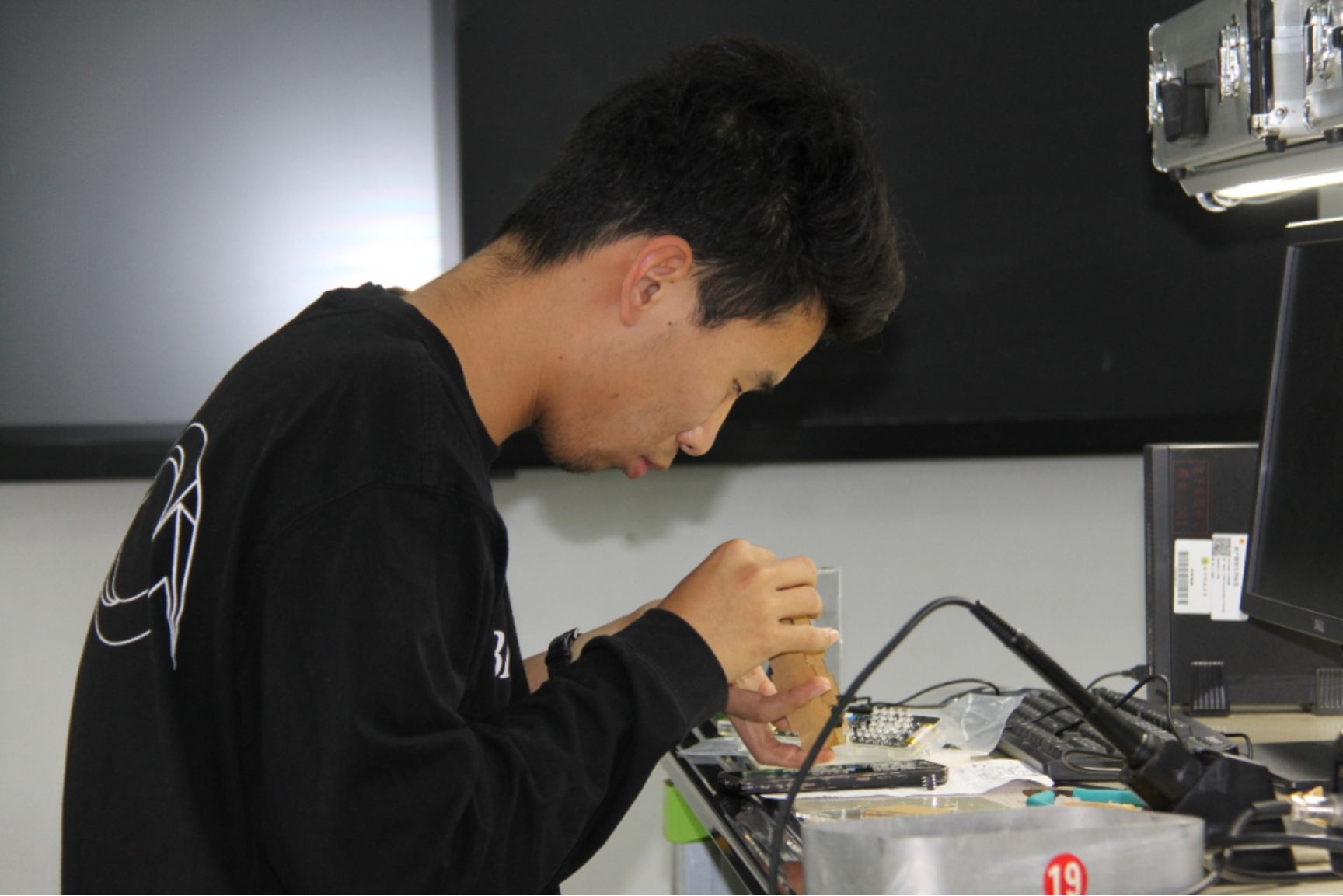 “智鹰”智能无人机俱乐部举办“打地堡”无人机空中投弹比赛,学员们紧盯操控屏,指尖灵活调整参数,尽显科研的魅力和实力。