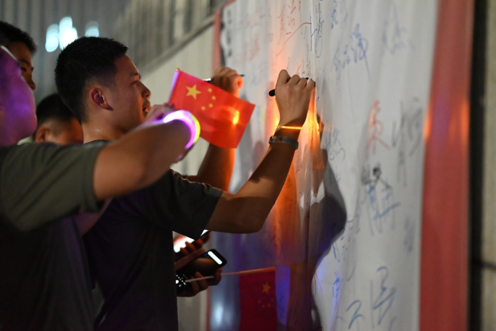 “逐风”长跑俱乐部组织“十一庆国庆”荧光夜跑,学员们戴上荧光手环、举着小旗,沿着跑道有序出发,点点荧光在夜色中连成一条流动的光河,激情在奔跑中释放,内心中对祖国的深切祝福也随着10.1千米的目标传递向远方。