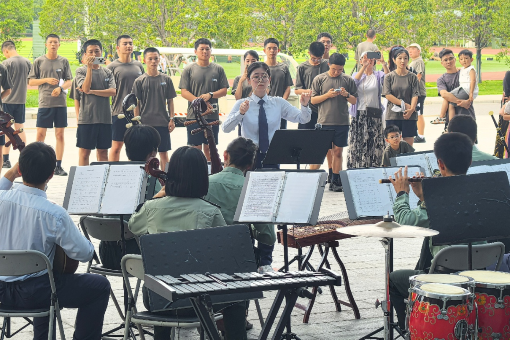 “高地庆华诞,同唱一首歌”,“高地”音乐创作室用熟悉的旋律唤醒学员记忆,激昂的合唱声在高地上空回荡,赤子之心也在音乐中愈发滚烫。