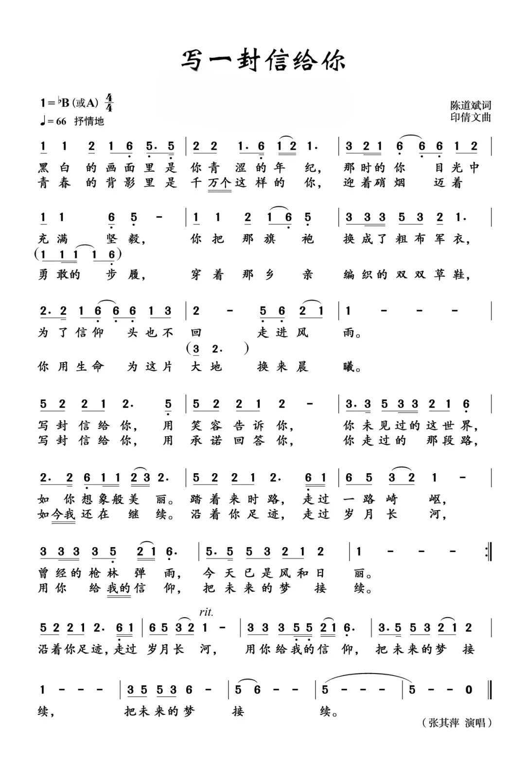 一封穿越时光的信件,献给千万个坚定的你。《写一封信给你》由陈道斌作词,印倩文作曲,张其萍演唱。